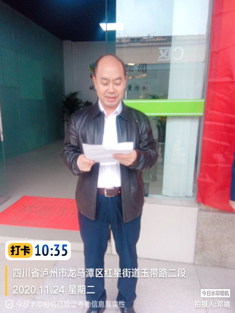 揭牌儀式前,項目經(jīng)理張明強(qiáng)致辭,回顧了從7月份開始接管后的重大事件,感謝所有員工的辛勞付出,他表示在今后的工作中,我們要更加努力,認(rèn)真工作,服從區(qū)委區(qū)政府、業(yè)主單位各級領(lǐng)導(dǎo)的調(diào)配,熟練掌握操作技巧,提高安全意識,把我們龍馬潭區(qū)的環(huán)衛(wèi)管理工作做得更好,用認(rèn)真工作的態(tài)度,用我們的實際行動,為營造優(yōu)美、整潔、和諧的龍馬潭區(qū)城區(qū)環(huán)境而努力,提升城市品位。為公司在四川的發(fā)展奠定堅實的基礎(chǔ)。