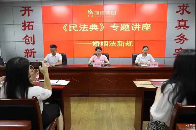 為了引導(dǎo)公司廣大女職工樹立正確的婚姻觀、家庭觀,有利于切實破除婚姻家庭領(lǐng)域中的封建思想和陳規(guī)陋習(xí),遏制家庭暴力的發(fā)展態(tài)勢。2021年7月5日16時,明佳集團(tuán)婦聯(lián)在公司工會的大力支持下組織開展了《民法典》婚姻法新規(guī)專題講座,講座由海南錦瀚律師事務(wù)所王亞文律師為70多名女職工授課。