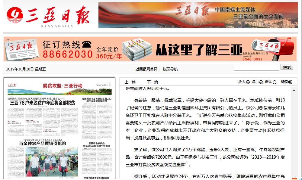 明佳集團(tuán)作為三亞的本土企業(yè),主動(dòng)扛起扶貧擔(dān)當(dāng),投身扶貧事業(yè),積極回報(bào)社會(huì)。在此次大采購(gòu)活動(dòng)中,集團(tuán)員工在總裁陳云的帶領(lǐng)下,購(gòu)買了4萬個(gè)雞蛋、玉米5大袋,還有一些雞、牛肉等農(nóng)副產(chǎn)品,合計(jì)金額約72600元。三亞日?qǐng)?bào)和三亞新聞聯(lián)播分別對(duì)明佳集團(tuán)的愛心大采購(gòu)活動(dòng)進(jìn)行了報(bào)道。